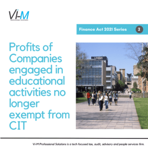 Under the Finance Act 2021, profits of companies engaged in educational activities will now be liable to companies income tax due to the removal of