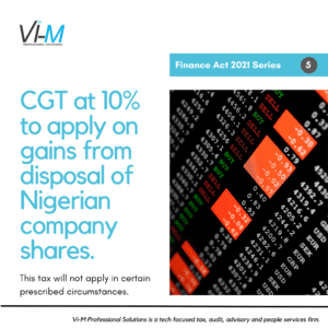 Gains from disposal of shares of a Nigerian company which was previously exempt from Capital Gains Tax at 10%, is now no longer expressly exempted.